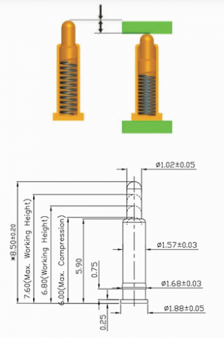 पोगो पिन (स्प्रिंग-लोडेड कनेक्टर) की मूल कार्य ऊंचाई: