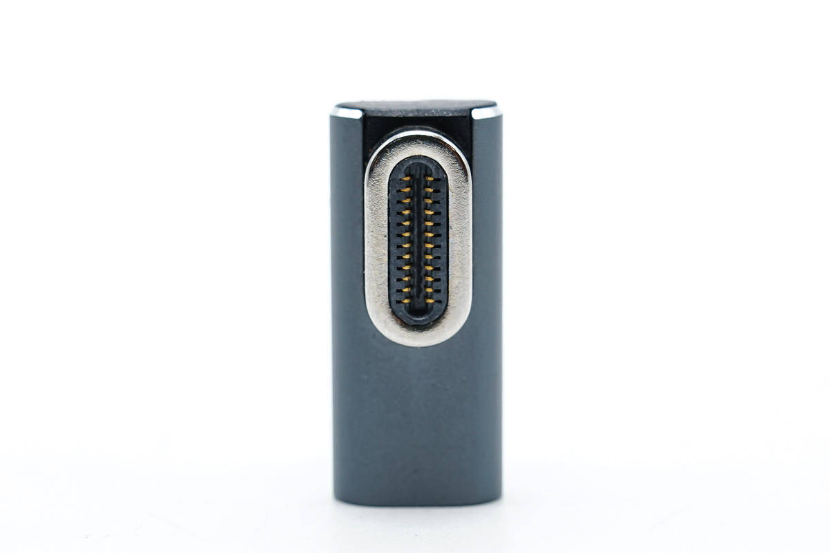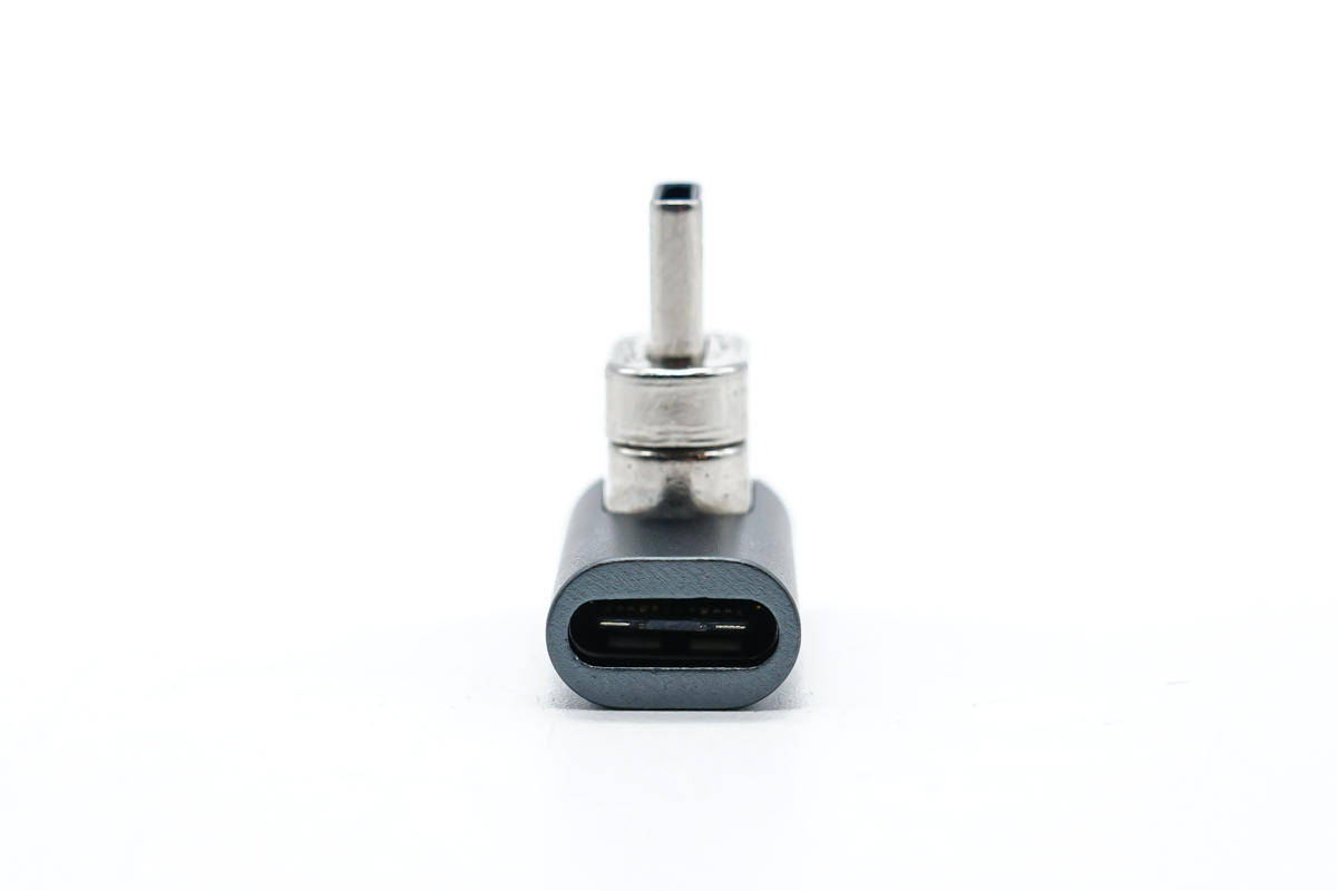 एडाप्टर का इनपुट एंड केबल कनेक्ट करने के लिए एक USB-C महिला पोर्ट को अपनाता है।