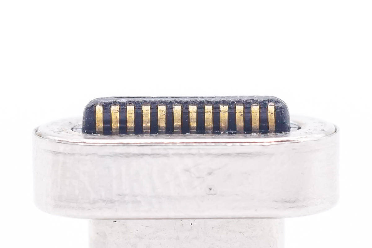 USB-C पुरुष अंत के आंतरिक विवरण पूर्ण पिन के लिए डिज़ाइन किए गए हैं।