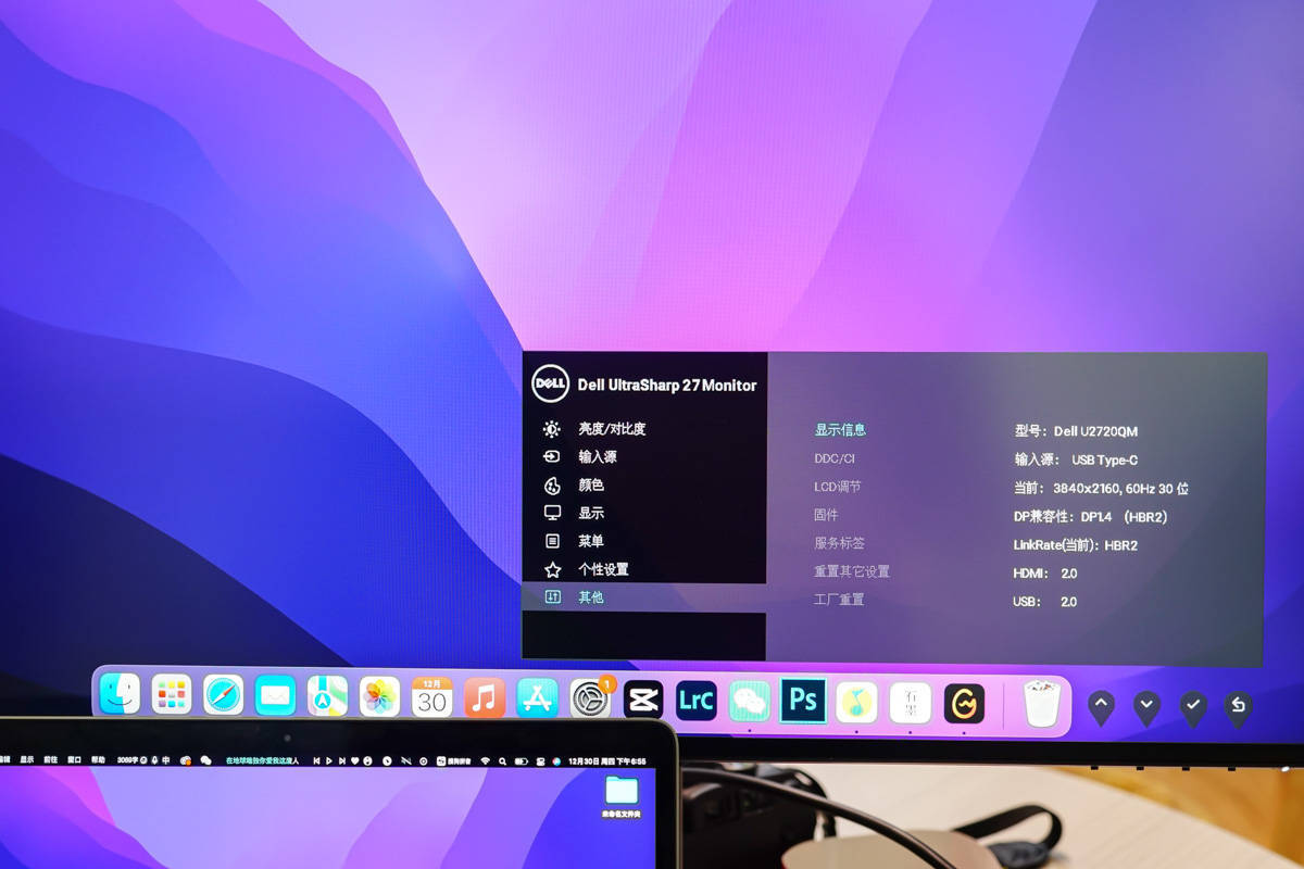 अगला, चलो वीडियो ट्रांसमिशन को देखते हैं, थंडरबोल्ट 3 डेटा केबल को एडाप्टर के माध्यम से डेल U2720QM 4K मॉनिटर से कनेक्ट करें।
