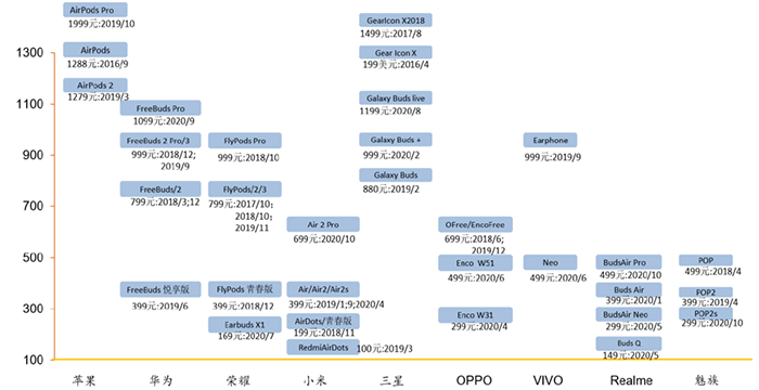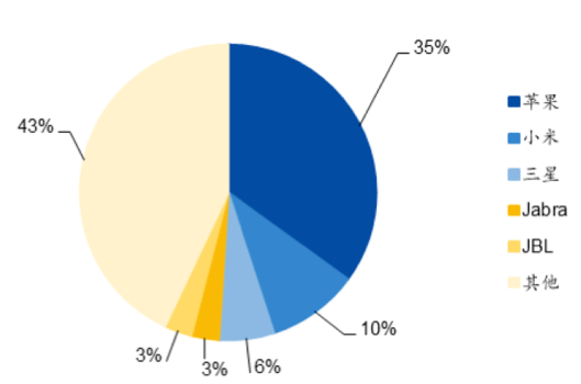 ब्रांड वितरण के दृष्टिकोण से, TWS हेडसेट बाजार में सबसे पहले Apple द्वारा विस्फोट किया गया था। कई वर्षों के विकास के बाद, इसके उत्पाद AirPods का मध्य-से-उच्च-अंत बाजार में बहुत अधिक बाजार हिस्सा है। काउंटरपॉइंट के विश्लेषण के आंकड़ों के अनुसार, 2020 की दूसरी तिमाही तक, TWS बाजार में शीर्ष तीन कंपनियां Apple (35 प्रतिशत), Xiaomi (10 प्रतिशत) और सैमसंग (6 प्रतिशत) हैं। मंडी।